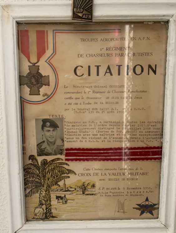 la croix du combattant. Celui-ci a fait partie du 10 e Sim (section d'infirmiers militaires) à Alger avant d'être libéré à Sidi-Bel-Abbès, berceau de la Légion étrangère.